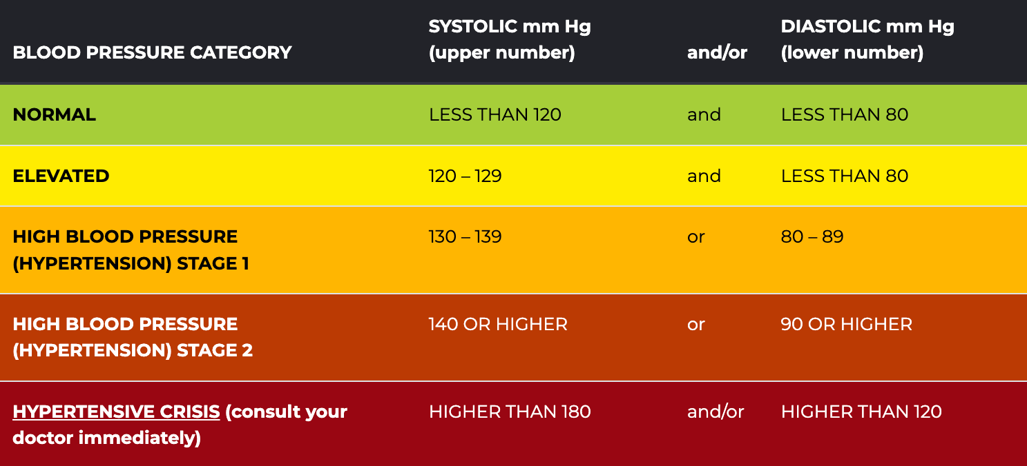 Προηγουμένως αναφέραμε την τιμή 120/80, οτιδήποτε πάνω από αυτό σε φυσιολογικές συνθήκες θεωρείται υψηλή αρτηριακή πίεση, ωστόσο υπάρχουν διαφορετικές διαβαθμίσεις.