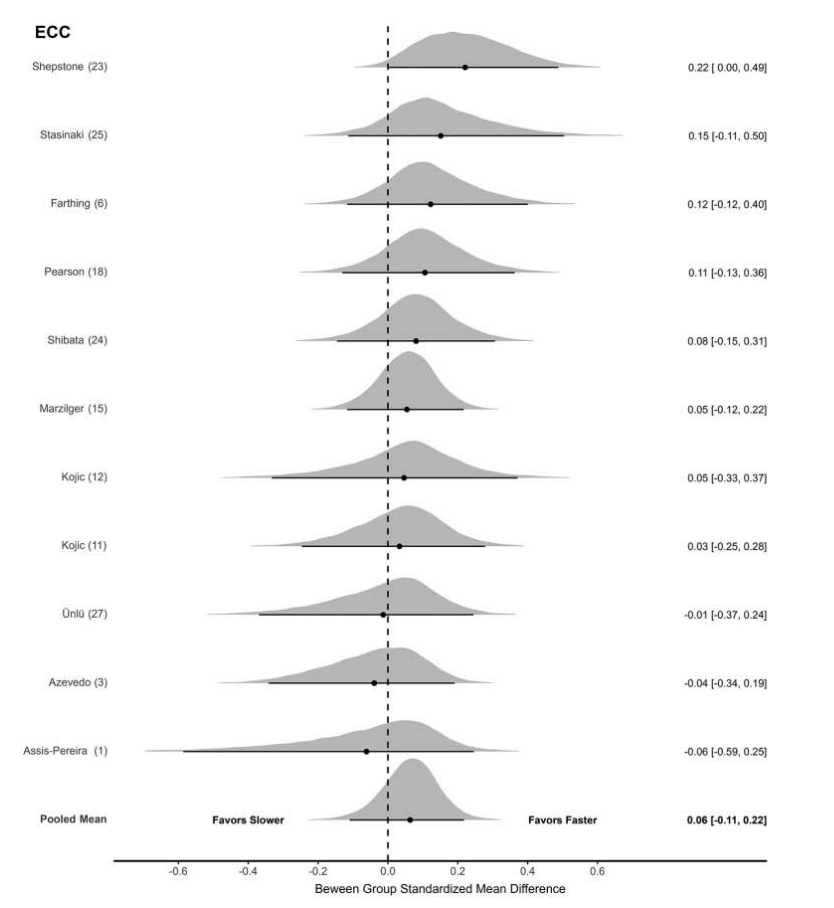 Πήραν 14 έρευνες και σύγκριναν πως οι αργές επαναλήψεις και οι γρήγορες επηρεάζουν τη μυϊκή ανάπτυξη. Εξέτασαν πως η ταχύτητα της έκκεντρης και της σύγκεντρης φάσης επηρεάζει τη μυϊκή υπερτροφία.
