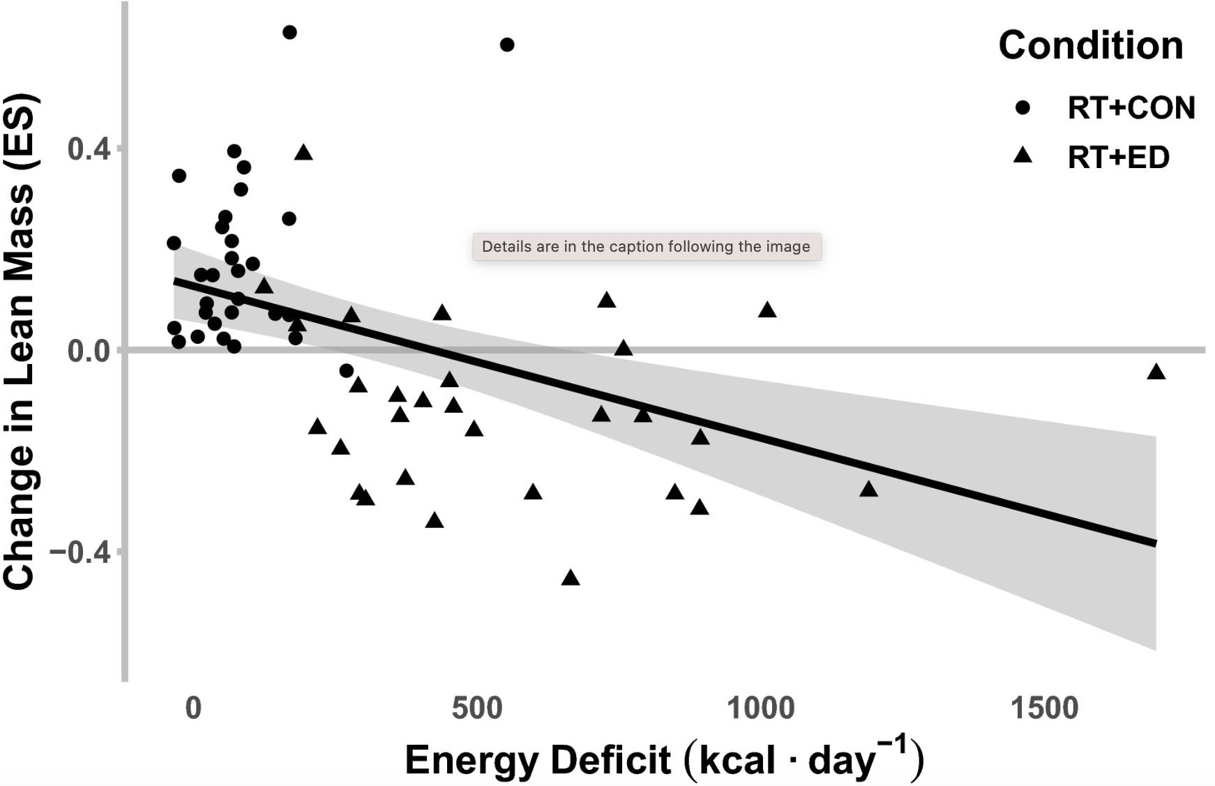 Η συγκεκριμένη έρευνα ανέλυσε την επίδραση ενός θερμιδικού ελλείμματος στην μυϊκή μάζα [1]. Τα δεδομένα έδειξαν ότι έλλειμμα 500 θερμίδων και κάτω ήταν αποδοτικό στην διατήρηση της μυϊκής μάζας και σε κάποιες περιπτώσεις στην αύξηση της. Ωστόσο, έλλειμμα ύψους μεγαλύτερου των 500 θερμίδων οδήγησε σε ελάχιστη μείωση της μυϊκής μάζας, και όσο μεγαλύτερο παρουσιαζόταν τόσο μεγαλύτερο το ρίσκο για απώλεια περισσότερου μυϊκού ιστού.