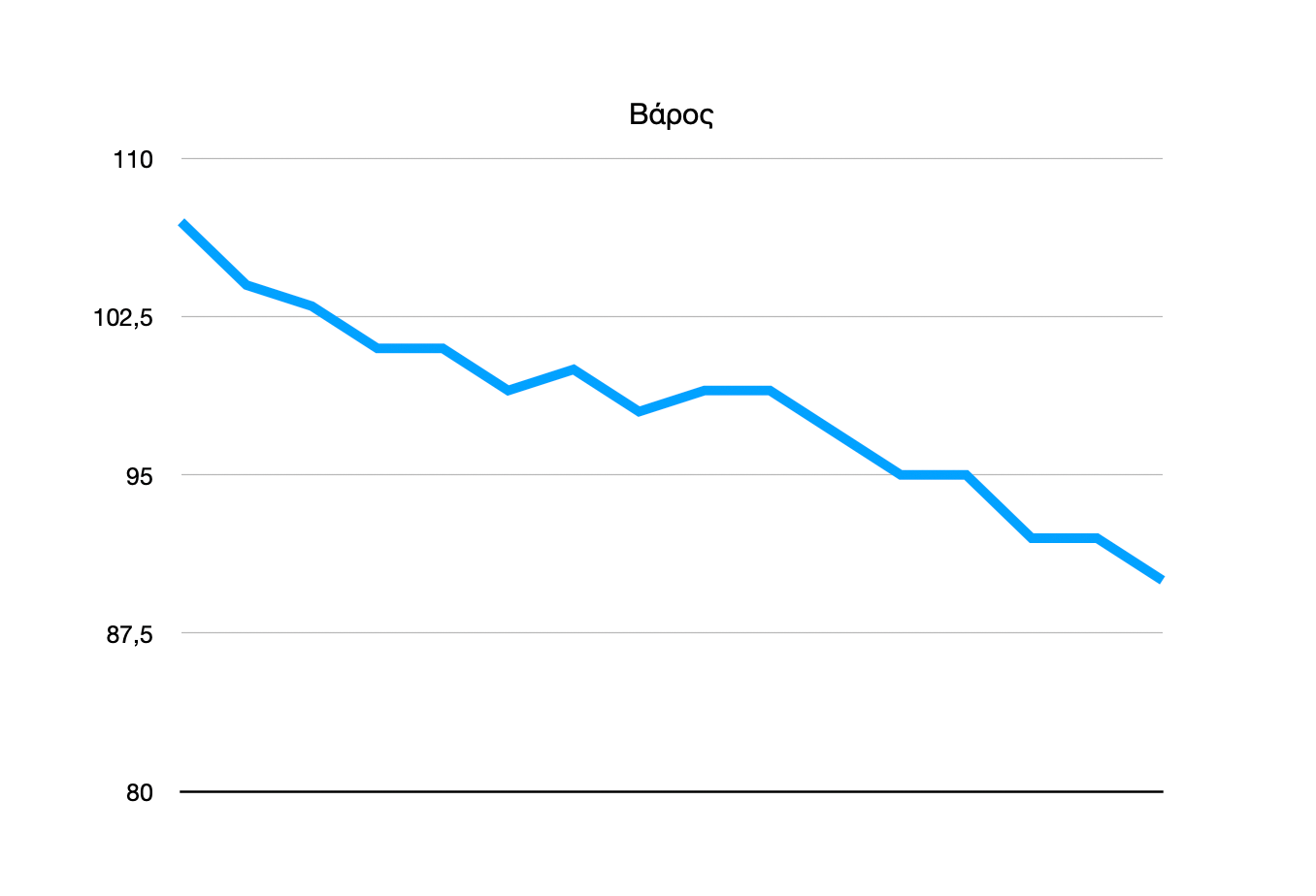 *Αν δείτε στην γραμμή 95 του γραφήματος θα παρατηρήσετε ένα μικροδιάστημα όπου το βάρος έμεινε ίδιο, αυτό το διάστημα οι άνθρωποι το ονομάζουν πλατό.. Προφανώς δεν είναι.