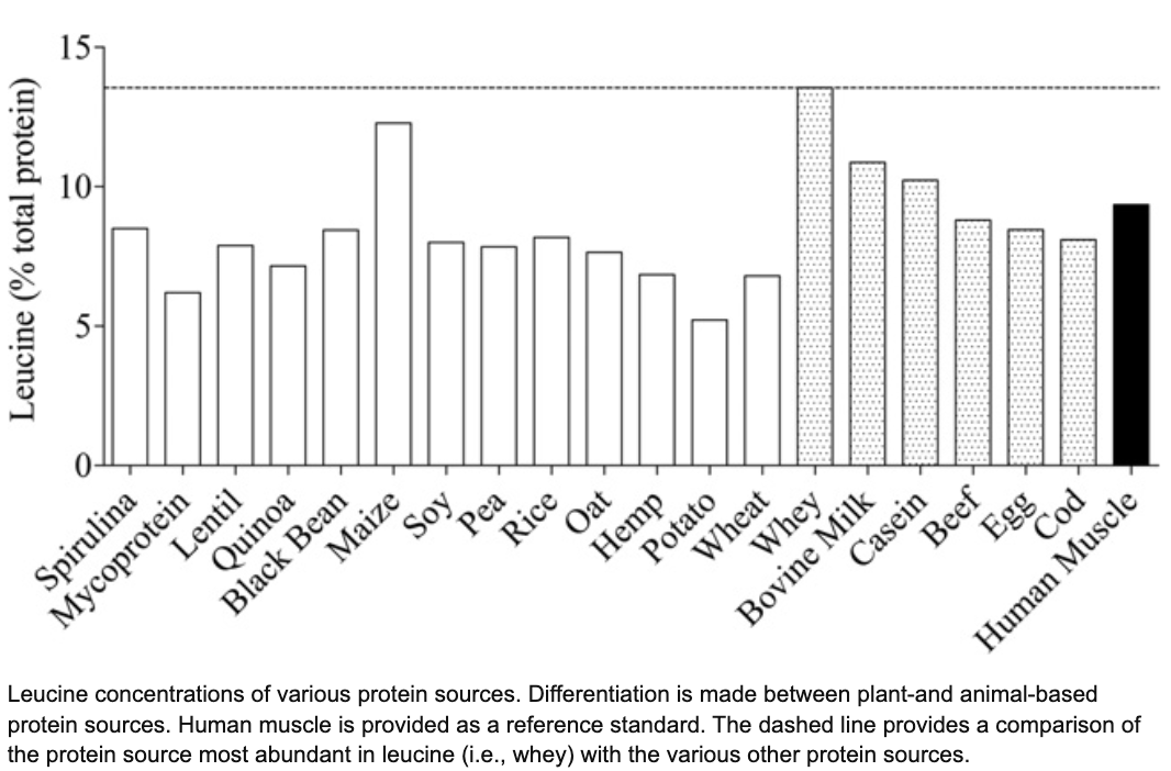 Το κύριο πρόβλημα που έχουν οι φυτικής προέλευσης πρωτεΐνες συγκριτικά με τις παραπάνω επιλογές είναι ότι συχνά υπολοίπονται σε κάποια απαραίτητα αμινοξέα και είναι λιγότερο αποτελεσματικές στην αύξηση της πρωτεϊνοσύνθεσης. Ωστόσο, έρευνες έχουν δείξει ότι μπορούμε να γεφυρώσουμε αυτό το ''κενό'' μέσω τον συνδυασμό δύο διαφορετικών φυτικών πρωτεϊνών. Ένα παράδειγμα είναι το εξής: