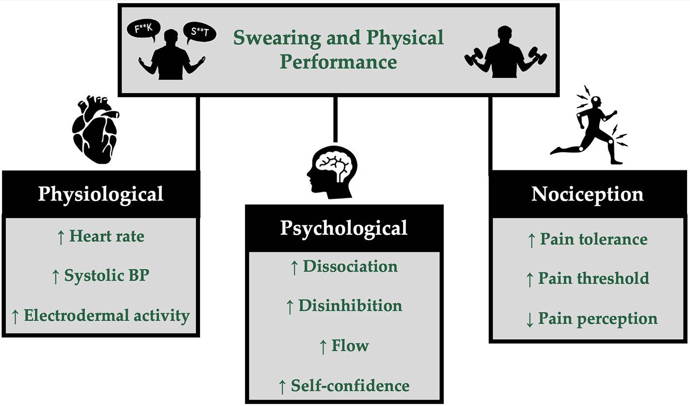 Πέρα από το χιούμορ, πλέον έχουμε ερευνητικά στοιχεία που αποδεικνύουν ότι το ξέσπασμα λεκτικής μορφής μπορεί να boostaρει την σωματική απόδοση κατά τη διάρκεια σύντομων και έντονων προσπαθειών που απαιτούν υψηλή παραγωγή δύναμης και έκρηξης, ακόμα και αν οι μηχανισμοί του δεν είναι 100% σαφείς.